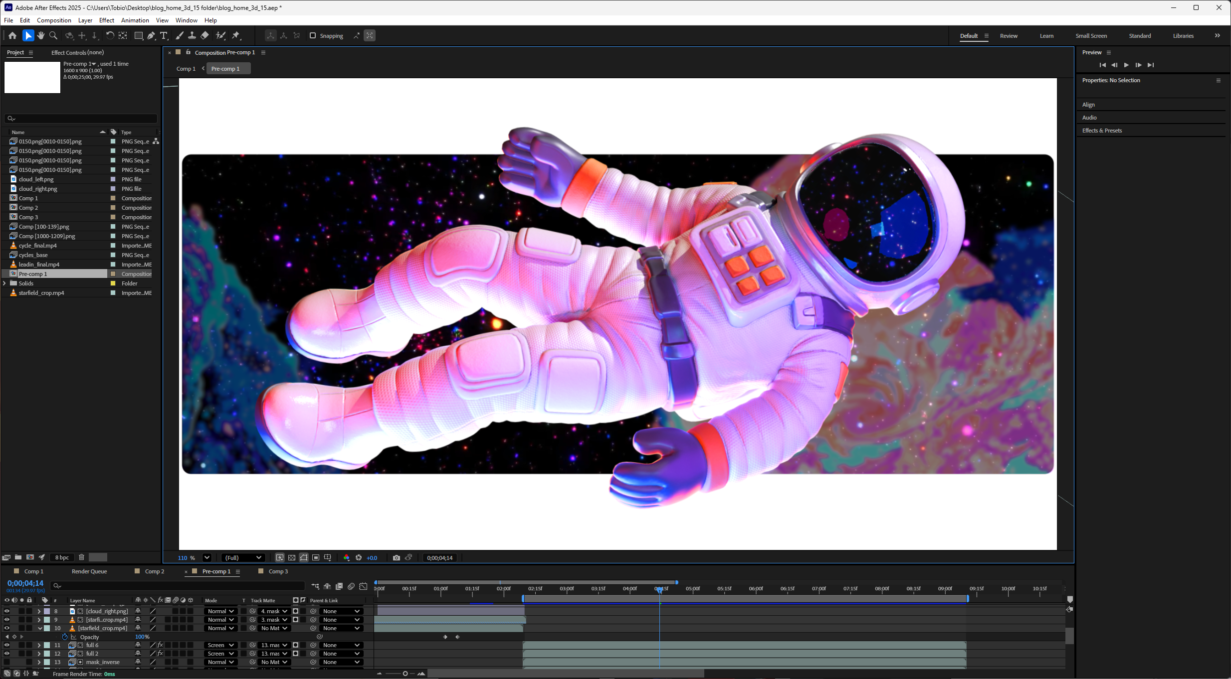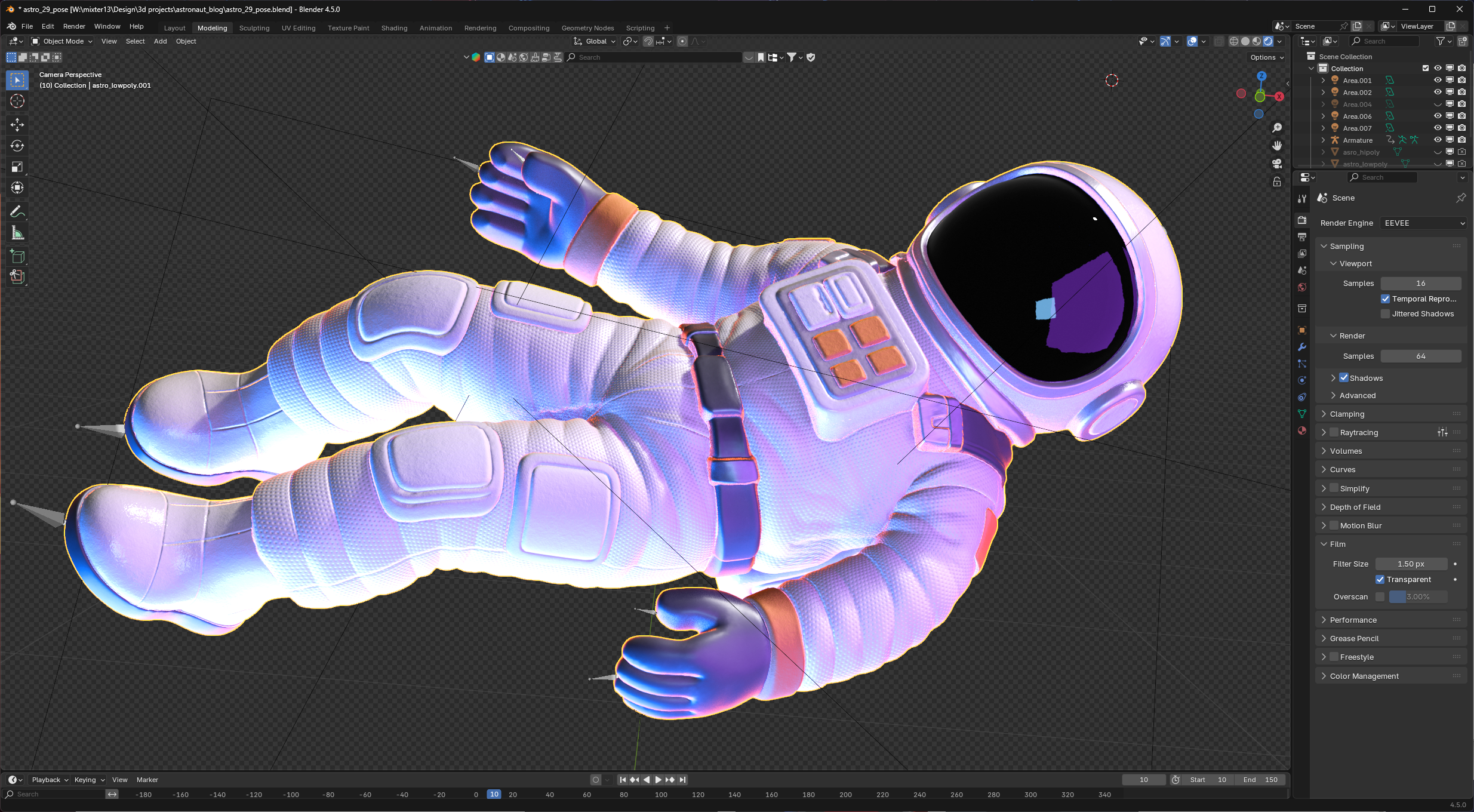 Left to right: My previous blog cover art; new textured and rigged 3D astronaut posed in Blender; compositing and sequencing clips in After Effects.