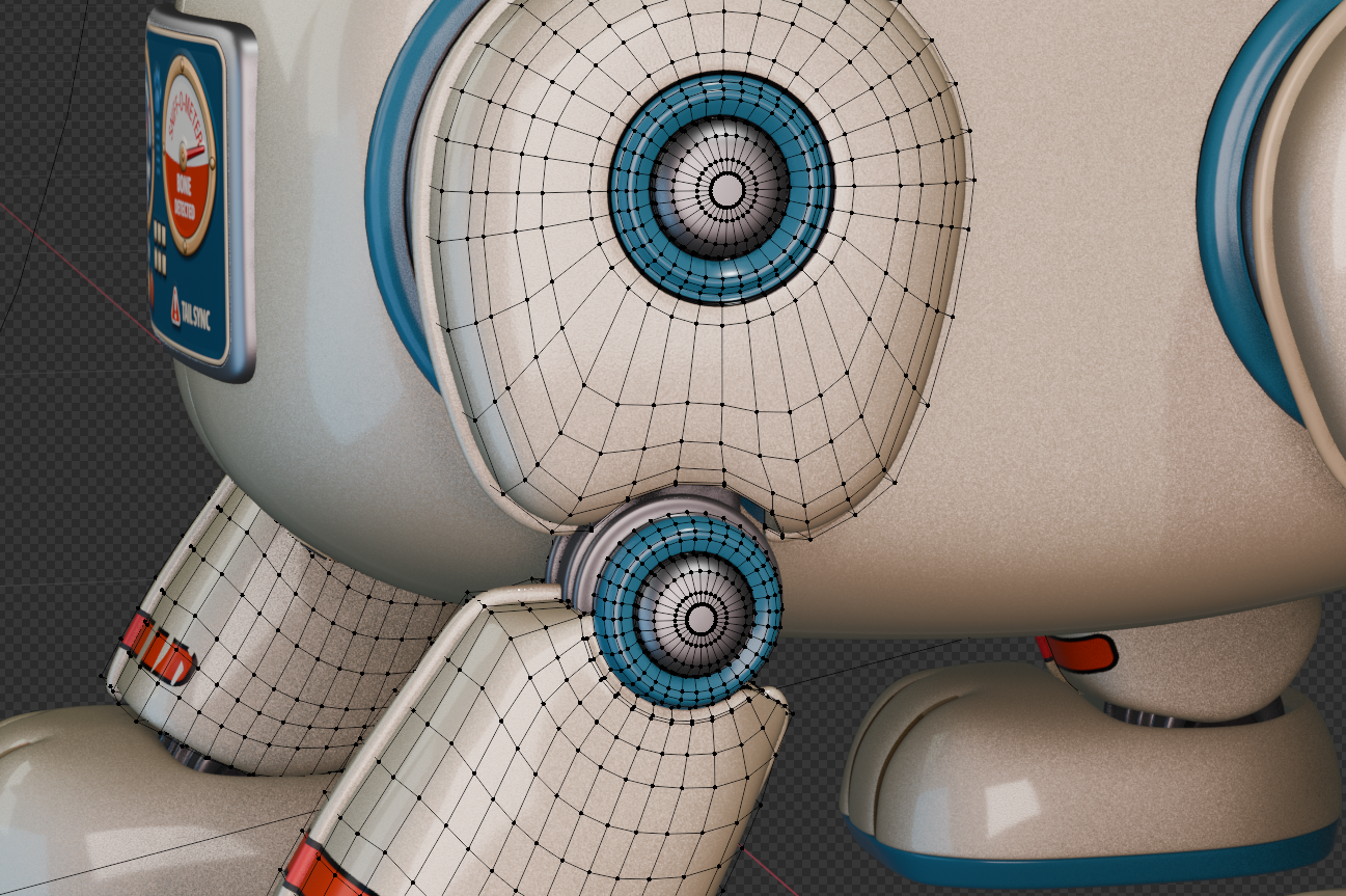 Design-wise, I prefer Sony’s later generation Aibos like the ERS-7 and ERS-1000, which had more rounded features and perhaps appear less “robotic” (I know, ironic), so I based the body style more on those. I also felt it was important to convey a degree of believability to the construction, like obviously visible mechanical joints in the legs, since Aibos are known for their sophisticated movement. At the same time, I didn’t want to stray too far from the mid-century vibe I’m trying to capture in these new designs, so I doubled down on features like old-scool lithography, tin embossing (in the form of bump mapping), clasp joined seams and retro colorways.